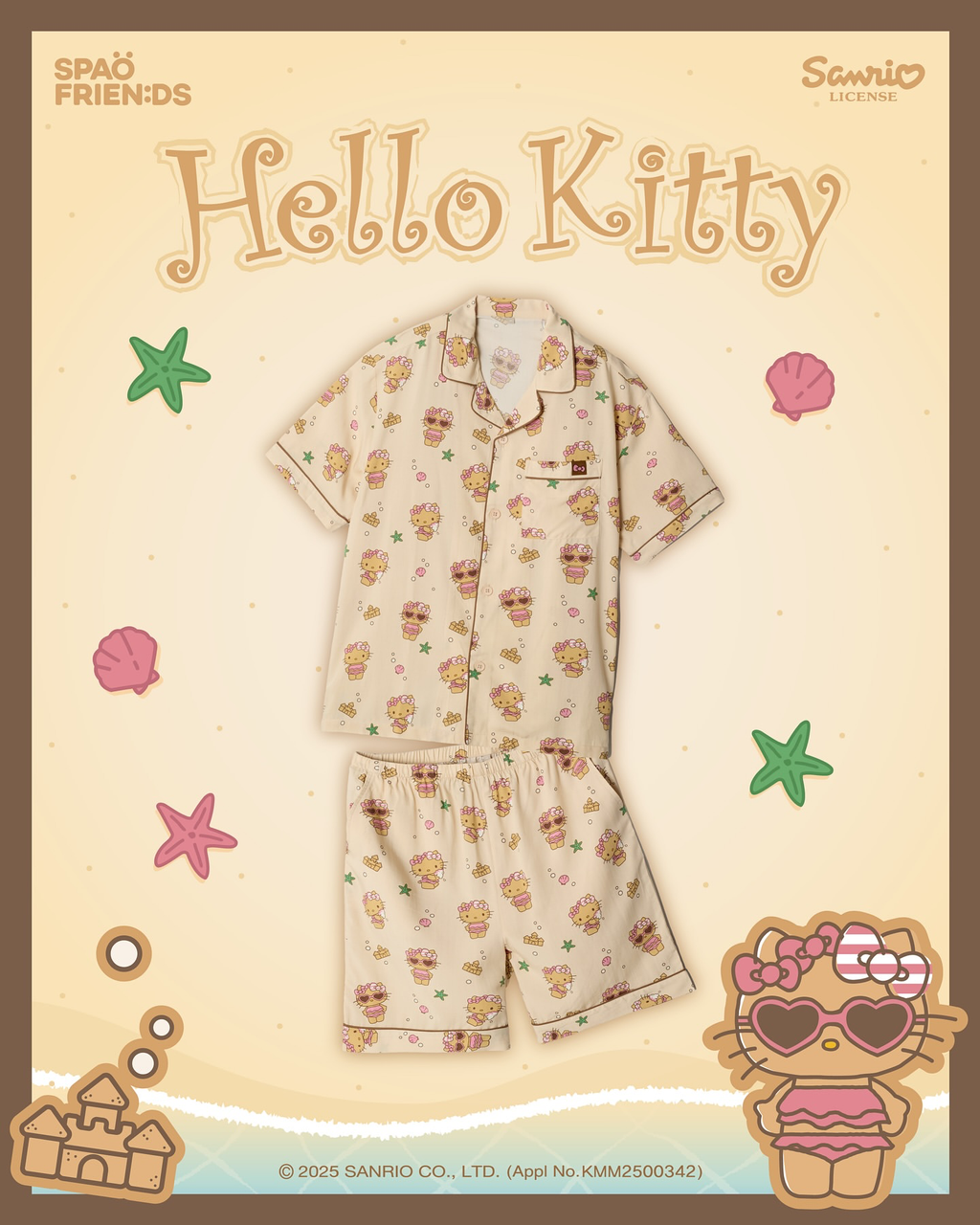 (SPAO x Sanrio) 黑皮Kitty睡衣set (短袖睡衣+短褲)